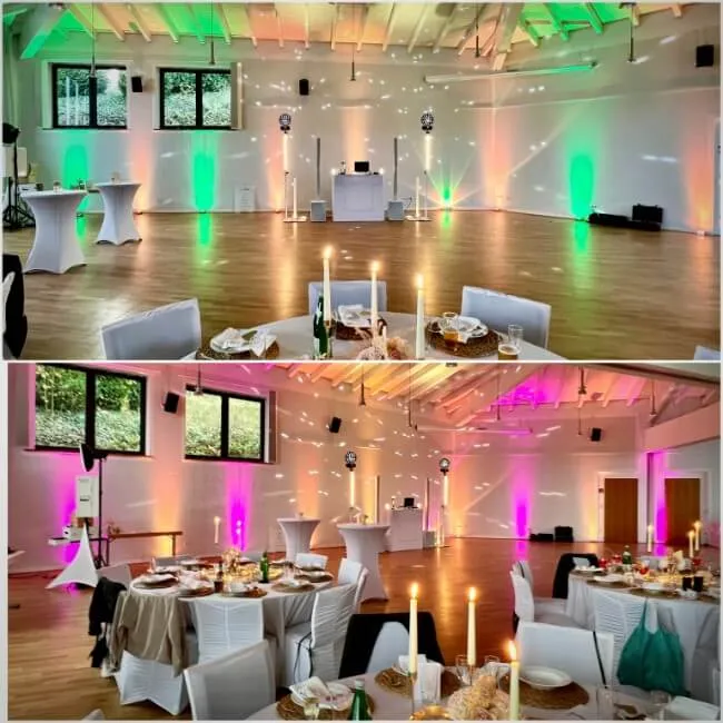 Wir unterhalten uns im ersten unverbindlichen Gespräch über eure Wünsche zum Ablauf eures schönsten Tages, Musikrichtungen und das Lichtdesign. Du erhältst dann binnen Kürze Auswahl-Angebote für eure Feier.